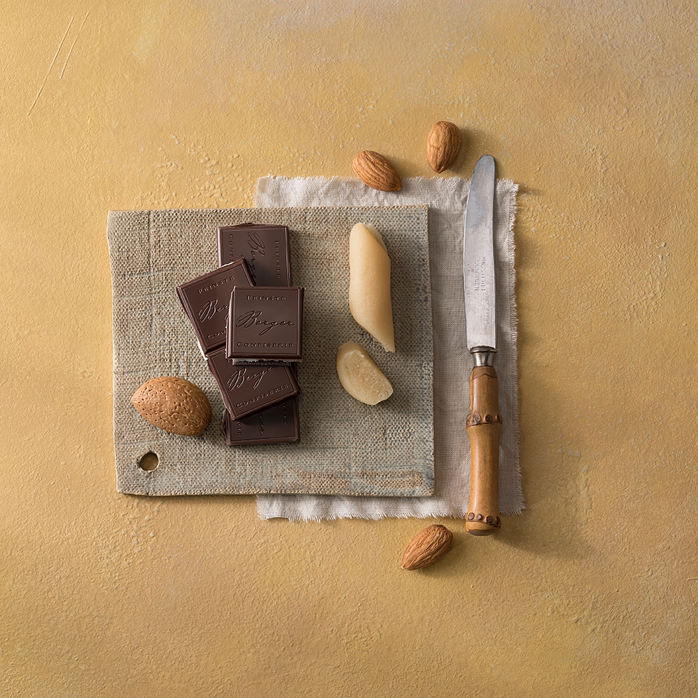 Gefüllt mit einer cremigen Ganache mit feinstem Marzipan und Mandel.