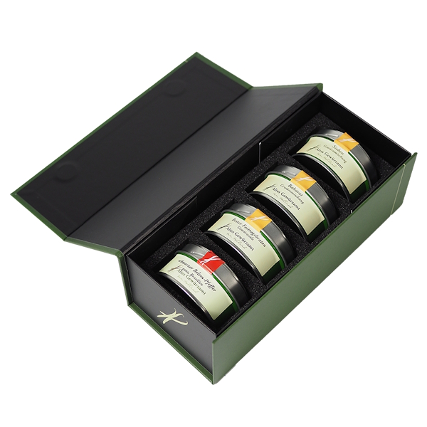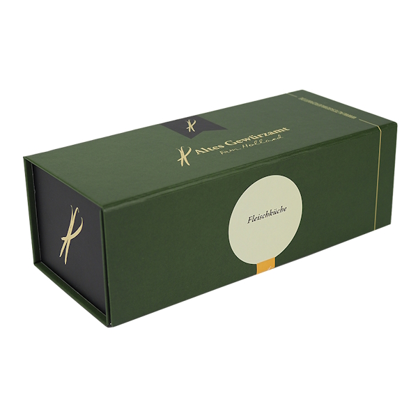 Edle Geschenkbox mit hochwertigem Schaumstoff-Inlay | Abmessung (L/T/H): 22,0 cm × 9,0 cm × 7,5 cm | Allergenkennzeichnung: keine, kann Spuren von SENF und SELLERIE enthalten | Aufbewahrungshinweis: dunkel, trocken, kühl und luftdicht verschlossen lagern; nicht über oder direkt neben dem Herd aufbewahren, da Wärme und Feuchtigkeit das Aroma vermindern können