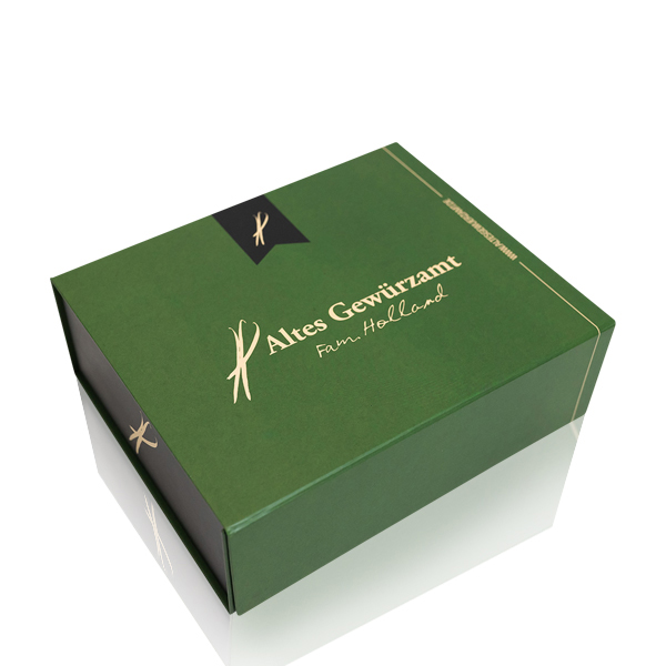 Edle Geschenkbox mit hochwertigem Schaumstoff-Inlay | Abmessung (L/T/H): 23,5 cm × 18,5 cm × 7,7 cm | Allergenkennzeichnung: Senf, Sellerie, Sesam | Aufbewahrungshinweis: dunkel, trocken, kühl und luftdicht verschlossen lagern; nicht über oder direkt neben dem Herd aufbewahren, da Wärme und Feuchtigkeit das Aroma vermindern können