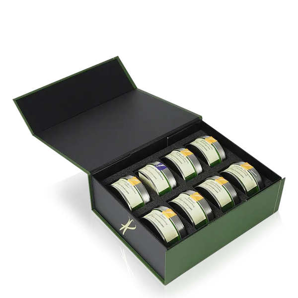 Edle Geschenkbox mit hochwertigem Schaumstoff-Inlay | Abmessung (L/T/H): 23,5 cm × 18,5 cm × 7,7 cm | Allergenkennzeichnung: Sellerie, Sesam | Aufbewahrungshinweis: dunkel, trocken, kühl und luftdicht verschlossen lagern; nicht über oder direkt neben dem Herd aufbewahren, da Wärme und Feuchtigkeit das Aroma vermindern können