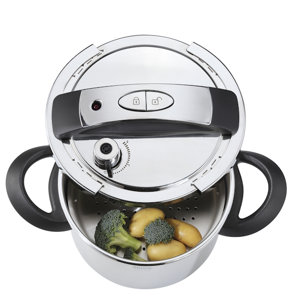 Ideal für schnelles, schonendes Garen von Fleisch, Gemüse, Suppen oder Beilagen. Zwei Druckstufen ermöglichen präzises Kochen – von sanftem Schmoren bis hin zu kraftvollem Schnellgaren. Der mitgelieferte Dämpfeinsatz erweitert die Einsatzmöglichkeiten zusätzlich.